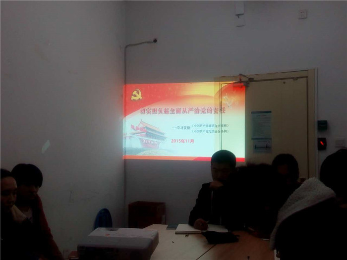 2015年11月29日晚,沙河校区第一党支部举行民主生活会、专题学习会。会议上,重点发展对象们就这段时间发生的国际新闻发表了自己的看法,同时,党支部书记王俊帅同志,就学习贯彻《中国共产党纪律处分条例》、《中国共产党廉洁自律准则》,为党支部同志进行了专题讲解。