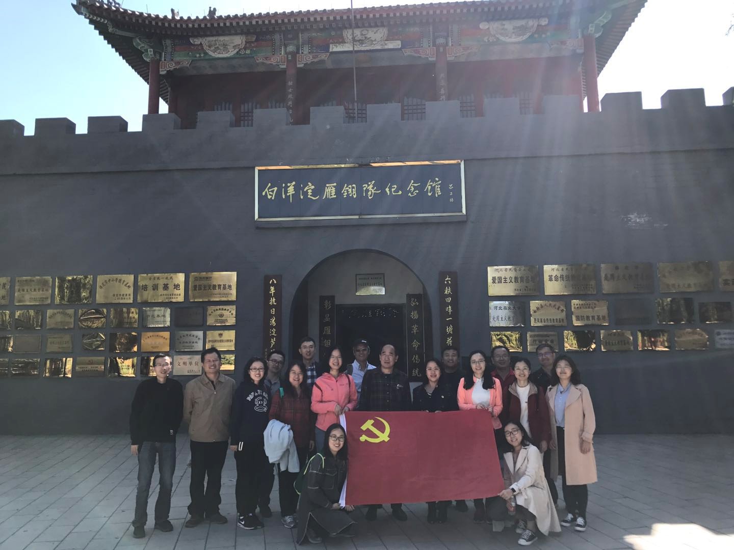 为深入开展党的十九大精神专题学习,开展好“不忘初心,牢记使命”主题教育,继续推进“两学一做”学习教育常态化制度化,williamhill官方网站各分党支部积极开展多种形式学习和实践活动,以牢记党员责任与义务,强化党员意识,增强党性。9月29日,材料物理、材料加工与自动化、测试中心三个教工党支部组织了走进白洋淀——“重温红色历史,砥砺奋进攀新峰”为主题的党建活动,由郑立静、袁泽红和王瑶三位书记带队,共18名党员人参加,走红色之路,不忘初心,砥砺前行。