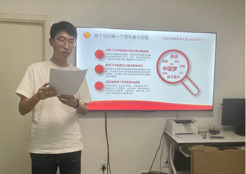 首先,许珑缤同学围绕《百年峥嵘路,迈向新征程》开展微党课讲解。习近平总书记指出:“我国发展面临新的战略机遇、新的战略任务、新的战略阶段、新的战略要求、新的战略环境。”其中,“新的战略阶段”这一定位十分重要,即新的战略机遇、新的战略任务、新的战略要求和新的战略环境。许珑缤同学围绕党的第一个百年奋斗历程、党的第二个百年奋斗目标、社会主义发展阶段历史定位、世界百年未有之大变局、马克思主义中国化历程等几个方面详细描述在大历史观视阈下,着眼于世界之变、时代之变、历史之变的特征来把握新的战略阶段的内涵,阐述了党的二十大召开的重大意义。