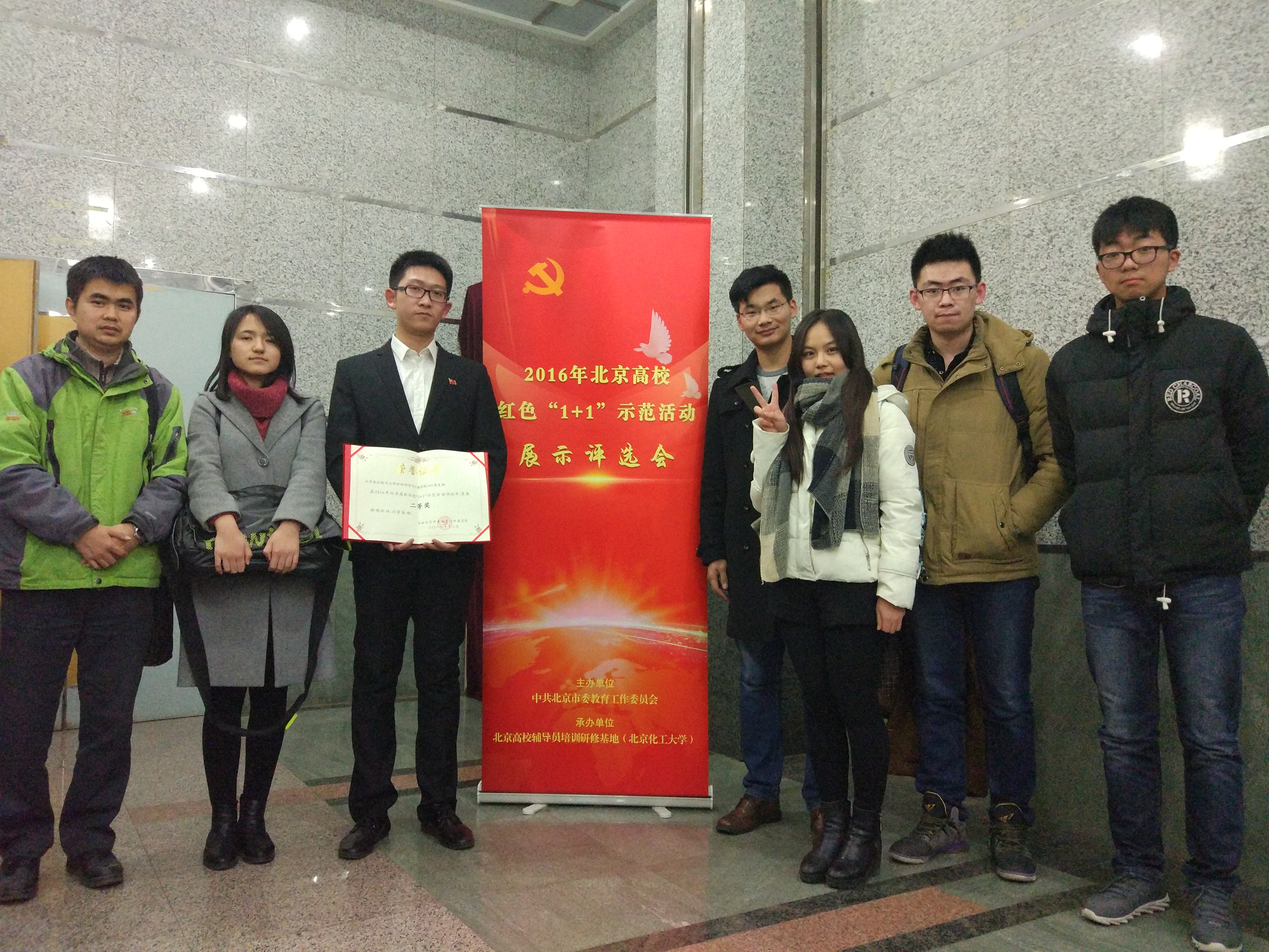 12月21日,由北京市委教育工委主办的2016年北京高校红色“1+1”示范活动评审会在北京化工大学举行。williamhill官方网站1401党支部共建活动从北京市50余所高校的1000余个党支部共建活动中脱颖而出,获评北京高校红色“1+1”示范活动二等奖。