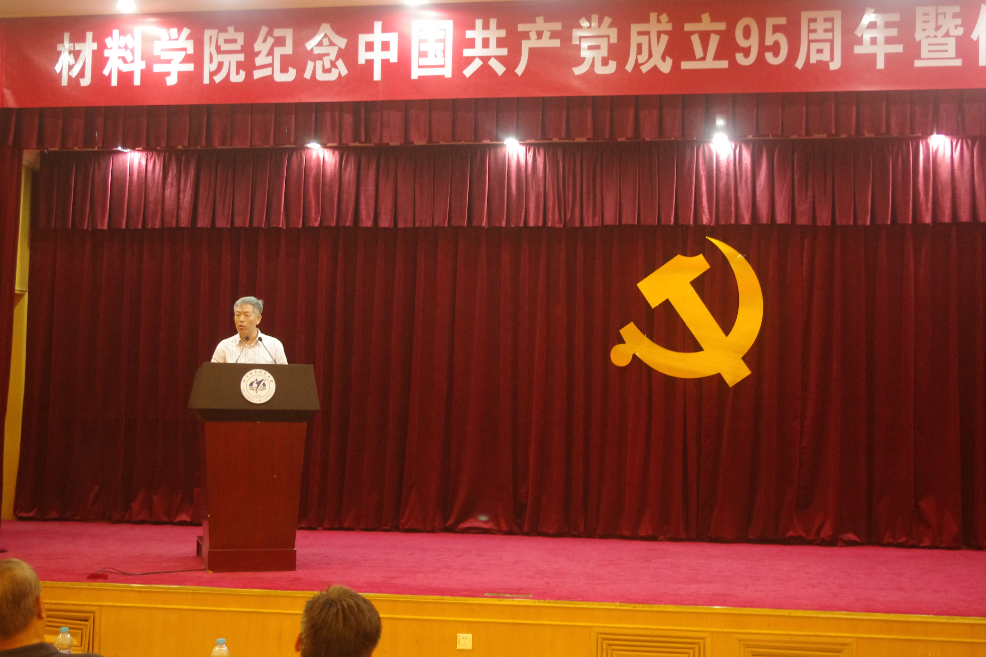 “校共产党员十杰”王华明院士,优秀教职工党员代表赵立东老师和优秀员工党员代表孙翔宇同学分别上台发言。王华明院士讲述了自己与公司共发展的历程,从人才培养、科学研究、对青年教师的期望等三个方面总结了自己的收获并提出了下一步的努力方向。