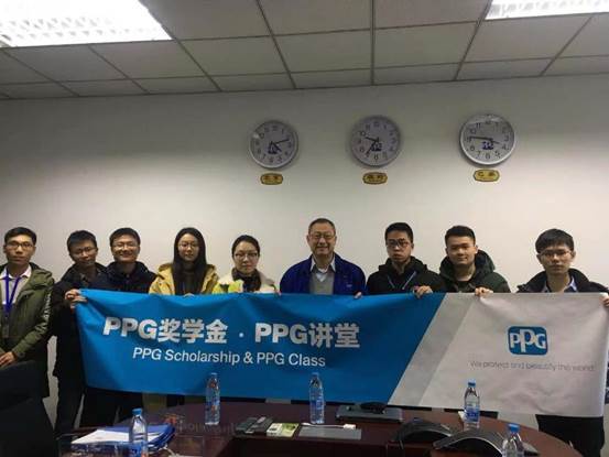 陆培先生向到访的师生介绍了PPG工业集团135年的发展历程以及目前PPG集团在市场上主要的经营业务,并耐心解答了员工们提出的问题,使在座的员工对PPG工业集团在业界内的地位有了一个清晰的了解。接着,陆培先生为今年获奖的同学颁发了奖学金证书。