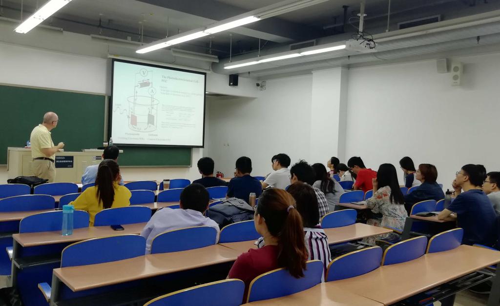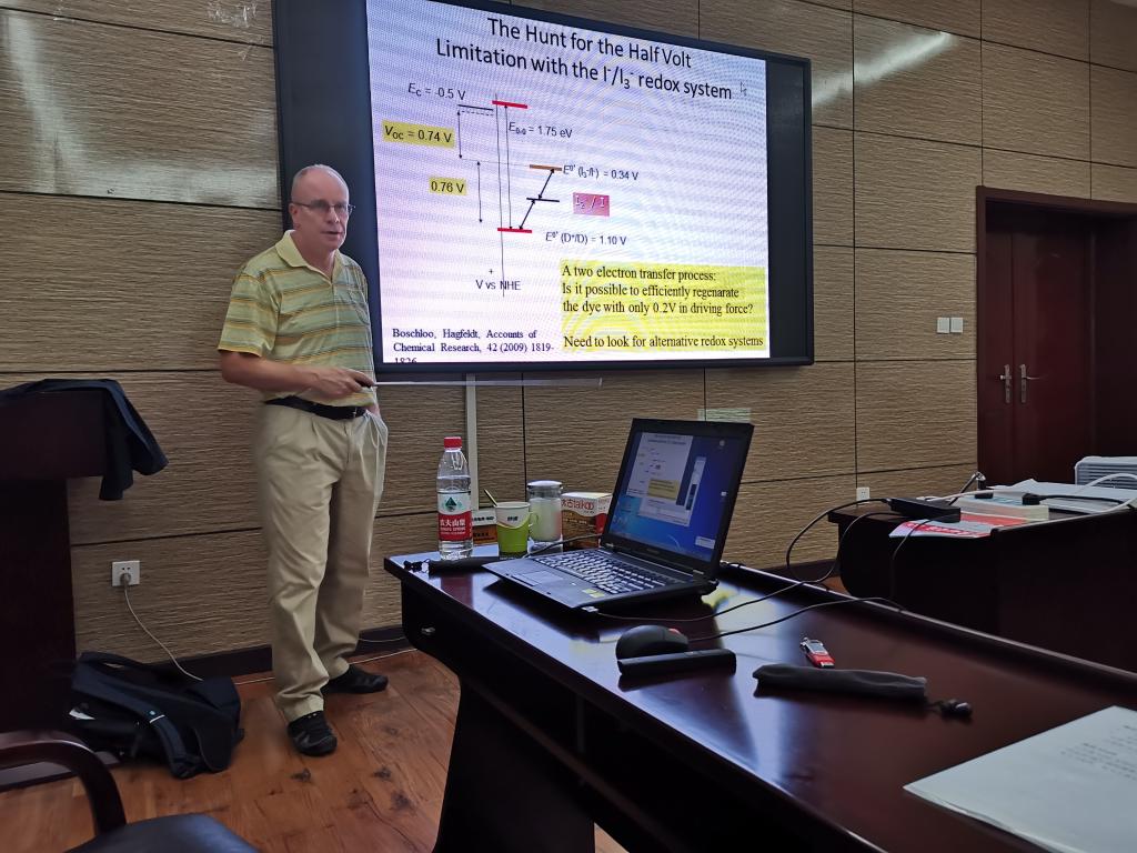 25日上午,Anders Hagfeldt教授在新主楼F213教室为公司本科生和研究生员工进行了授课,介绍了有关半导体物理方面的基础知识,以及半导体器件方面的应用进行了详细的讲解。课堂内容丰富,讲述生动有趣,同学们收获颇丰。访问期间与光电材料与器件实验室的研究生进行了深入的交流。