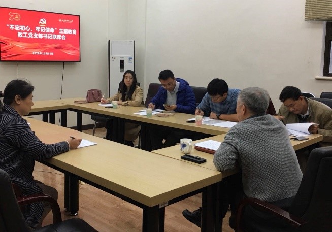 之后,马朝利书记召开了教工全体支部书记会议,对“不忘初心、牢记使命”主题教育中各项学习措施进行梳理,各项其他党建工作要求及布置。
