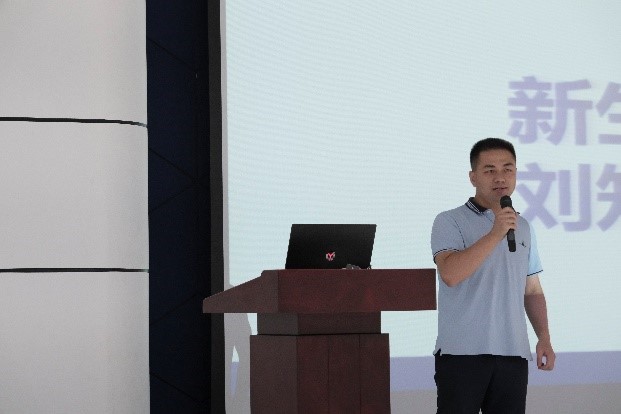 刘知琪教授代表新生班主任发言,他表达了班主任对员工成长的关切,鼓励同学们要勤于思考,善于汲取创新养分,既要有情怀、有抱负,树立远大理想;也要有能力、有学识,提高科学素养。