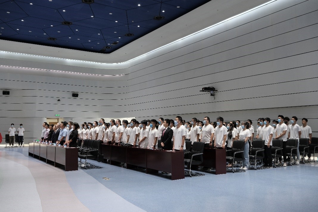 最后,在场领导、嘉宾为新生代表佩戴院徽。全体师生合唱北航校歌《仰望星空》,开学仪式在悠扬的旋律声中圆满结束。