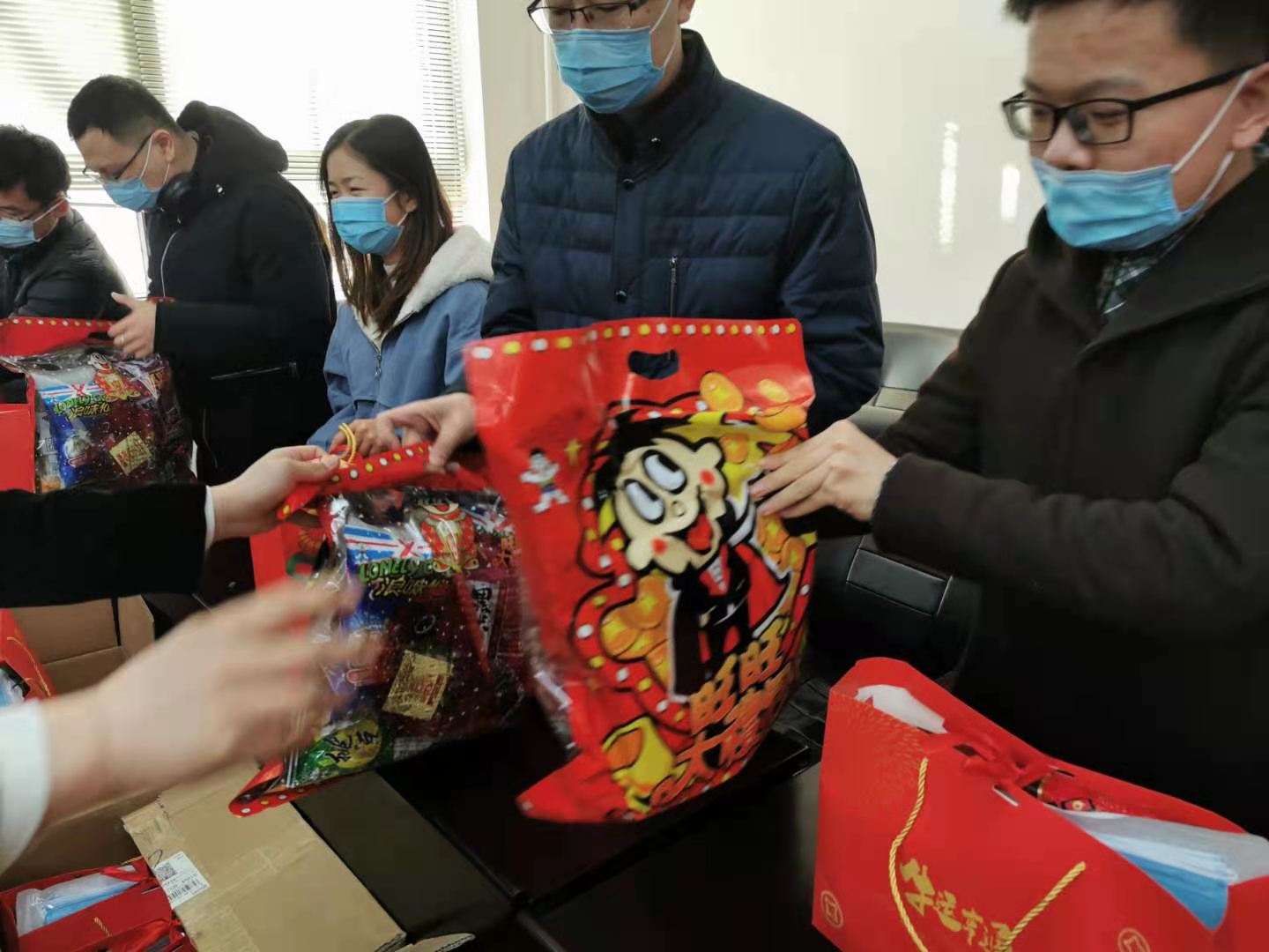 在场老师们为同学发放了丰富的节日慰问品和防疫物资,亲切询问了每一位留校员工的学习、科研和生活情况,叮嘱大家要严格遵守公司各项疫情防控规定,做好个人防护,互相关心关爱;提醒大家离家在外也不忘多同父母亲朋联系,沟通在校情况,避免父母亲朋担心;鼓励大家充分利用好假期在校时间,不断充实提升自己。同学们也畅所欲言,各自分享了自己的假期在校计划和年度展望。大家纷纷表示,自己虽然不能在新春之际和家人团聚,但老师们深深的关爱犹如家人一般暖心,一定会在严格遵守公司疫情防控规定下积极安排在校生活。