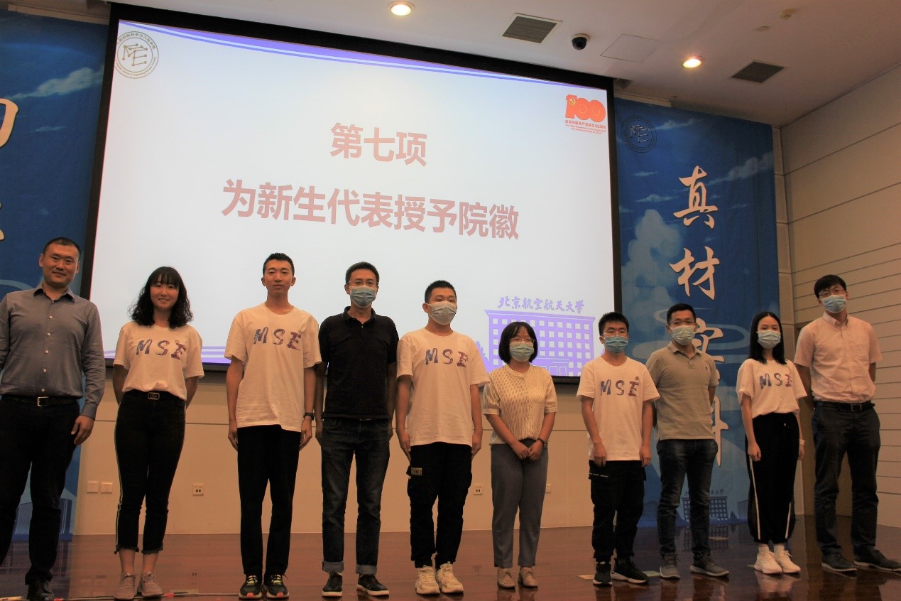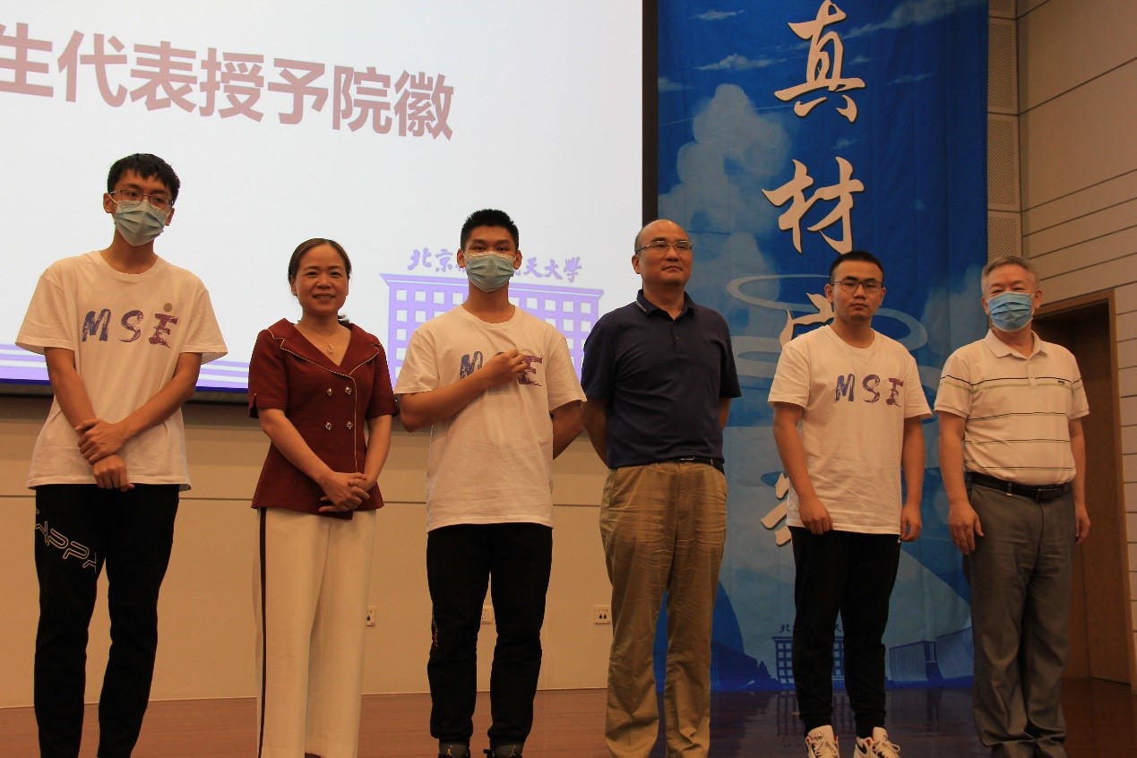 最后,在场领导、嘉宾为新生代表授予院徽。