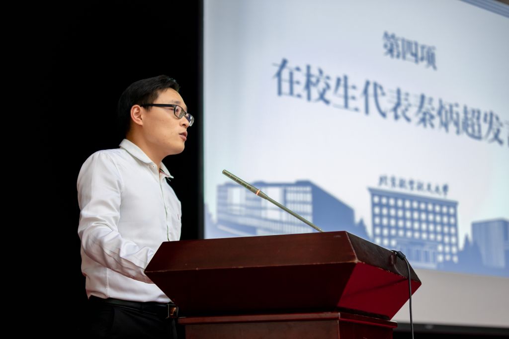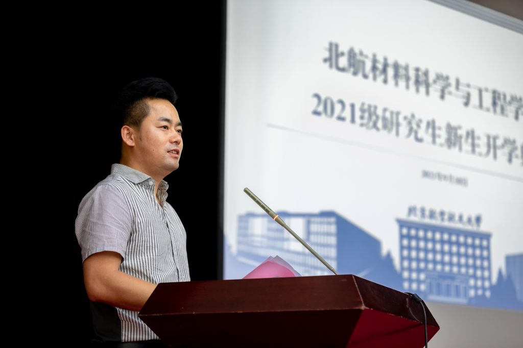 在校生代表2019级博士研究生秦炳超分享了自己在williamhill官方网站八年来的成长经历,并向在座的2021级全体研究生新生描述了科研成长中的思考,每一个日夜的奔赴与不懈让他从科研“小白”蜕变为Science第一作者,而面向国际学术前沿、瞄准国家重大战略需求终是材料学子永远的初心与使命。