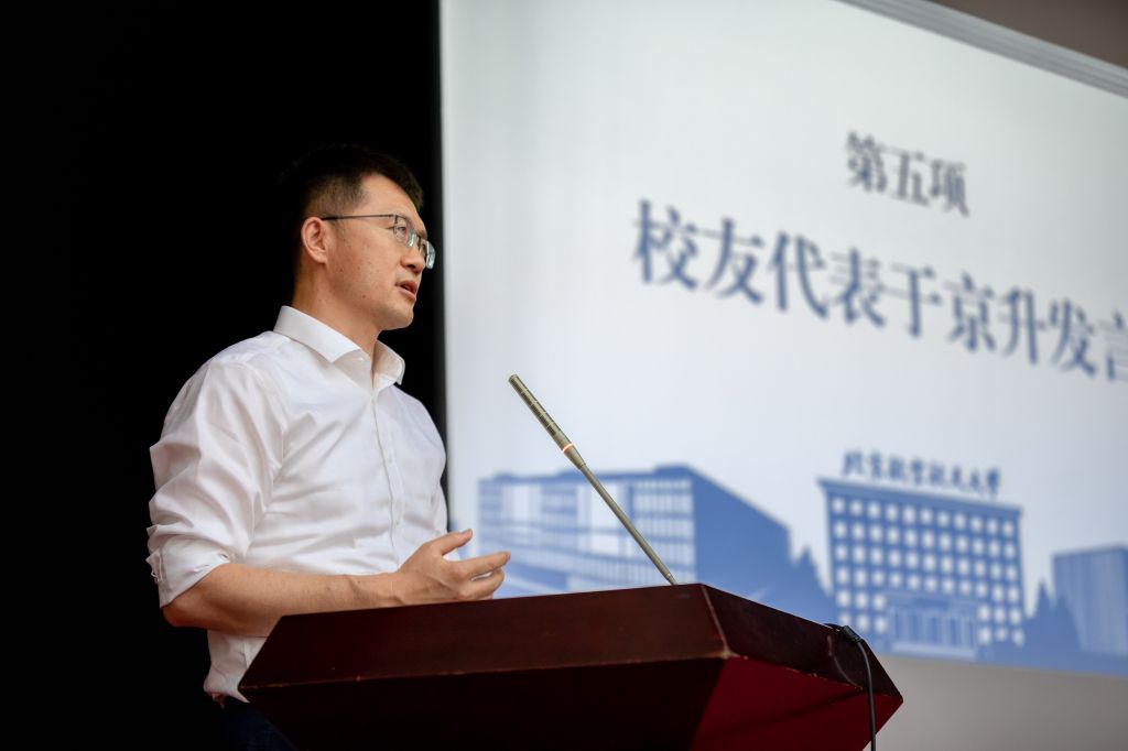在员工发言环节,新生代表2021级硕士研究生袁梦讲述了自己圆梦北航的奋斗历程,描述了对于williamhill官方网站研究生学习生活的憧憬与向往,并以传承“空天报国,敢为人先”为目标为自己树立了坚实目标。