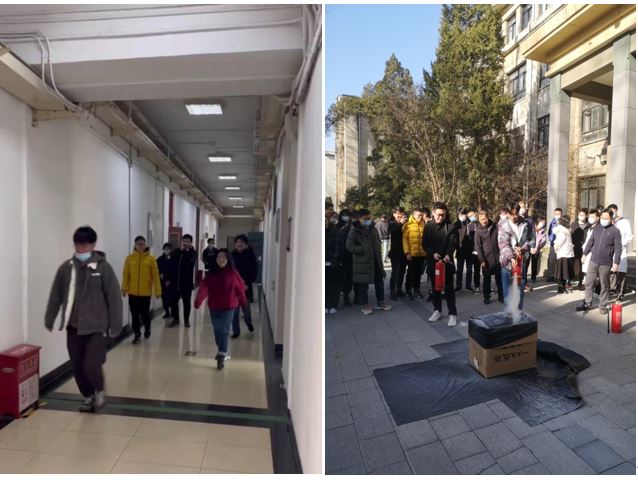 室内培训结束后,公司开展了消防安全演练。伴随着消防警报的声音,演练正式开始。公司师生在工作人员指引下,在规定时间内有序撤离了四号教学楼,并在四号楼正门前的广场完成了集合。最后,在王庆华老师的示范和指导下,大家观摩并尝试使用了灭火器,对灭火器的正确使用有了清晰的认识。随着火苗的熄灭,本次培训圆满结束。