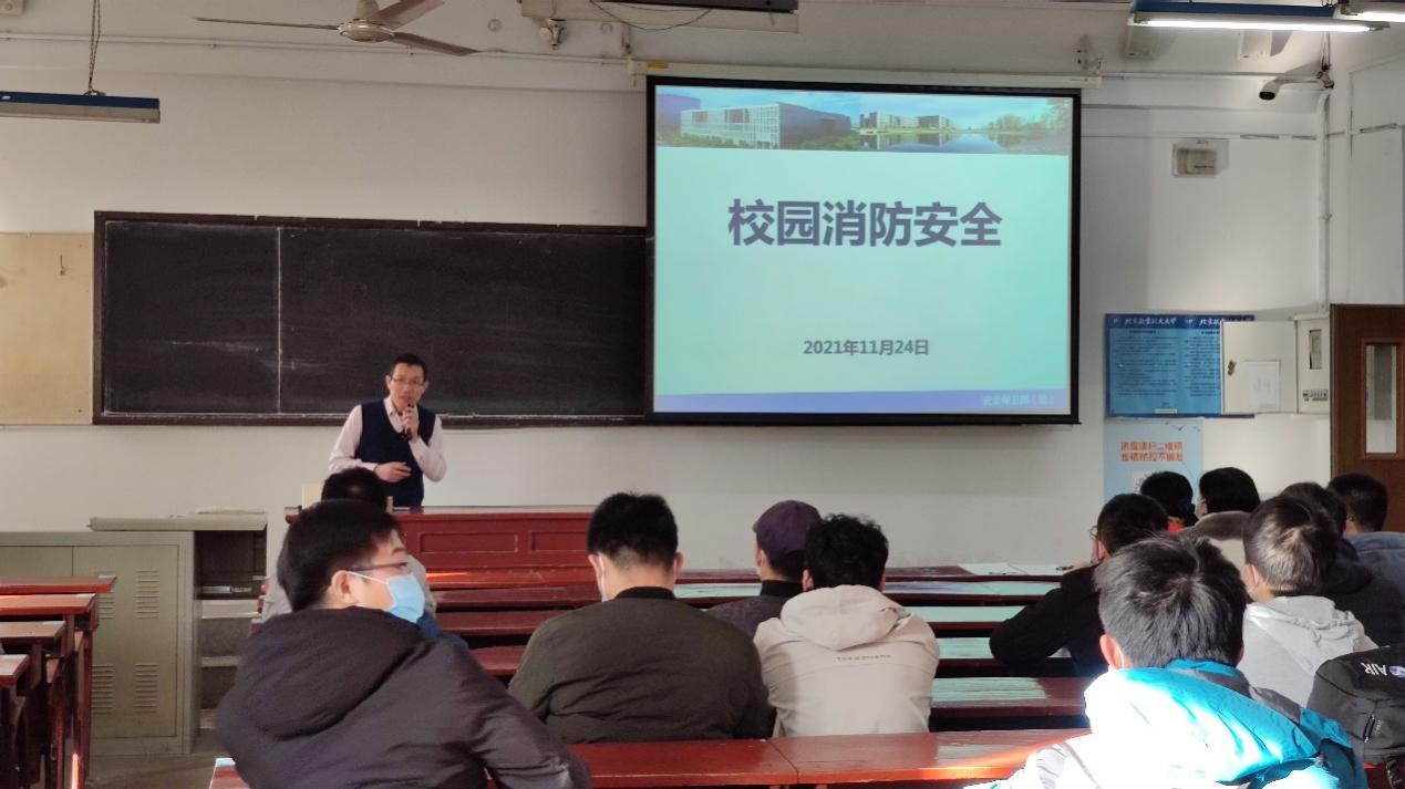 (通讯员:王一丹 摄影:金阳 李开旗)为进一步加强校园安全,提升师生消防安全意识,了解消防安全知识,培育紧急逃生自护自救的能力,营造安全、稳定、和谐的校园环境,本着“安全第一,预防为主”和“以人为本”的理念,williamhill官方网站于2021年11月24日上午,在四号教学楼进行了消防安全培训及演练。校保卫处消防科科长王庆华及公司部分师生参加了本次培训,培训由公司副经理郭洪波教授主持。