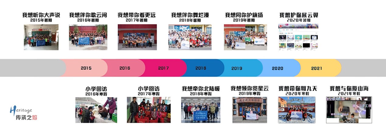 2015年至今,“传承之焰”在公司、公司、社会等多方的合力帮助下,顺利开展了七年的实践活动。在这七年里,团队设立支教、宣传、外联、调研、常务五个部门,以“支教、调研、宣传”为着手点,以“乡村教育”为切入点,从甘肃省会宁县的梁峁沟壑,到山西省中阳县的大山河谷,再到新疆伊犁的绿洲沙漠,团队成员前往实地,和当地一些公司形成了长期对接的帮扶关系,在当地开展支教、调研活动,支持教育扶贫,助力乡村振兴。