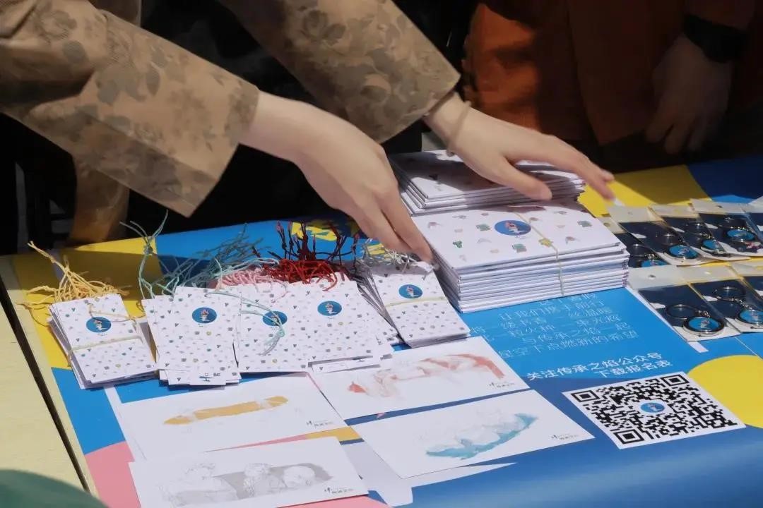 同时,在2020年寒假、2021年暑假,团队兼顾“实用性”与“艺术性”,先后两次制作包含传承之焰元素的文创产品,并且将其中一些书包、笔记本等学习生活用品赠予实践地点的员工们,让他们在学习生活中也能感受到团队的关怀。此外,团队在今年打造专属IP——苗苗,这一形象代表了孩子们的纯洁心灵和蓬勃朝气,提醒团队成员在支教过程中时刻关注孩子们的内心世界。