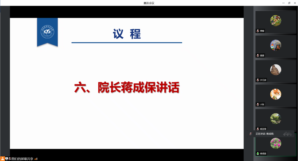 会议最后,公司经理蒋成保围绕会议内容进行了总结阐述,结合近期特殊时期下公司的疫情防控、教务教学、实验安全等事务性工作,引导全院师生发扬攻坚克难的精神,尽可能通过线上开展科研管理服务工作,强调要严格落实市委市政府、教工委及公司党委对疫情防控工作的要求,妥善布置校园各项必要措施,科学灵活做好线上教学、考试、答辩等工作,进一步全面加强对员工的关心关爱工作,落实系列暖心举措,努力把影响降到最低,确保公司各项工作安全、有序开展。