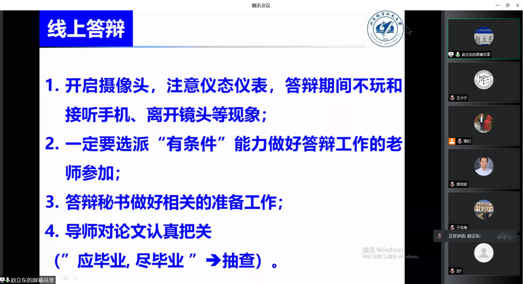会议第三项,williamhill官方网站副经理赵立东布置研究生教学培养相关工作,就疫情期间研究生教育培养环节,与参会老师进行了详细沟通,内容涵盖近期研究生线上毕业答辩、公司研究生线上教学课程开展以及近期线上开展科研形势下的在线指导,强调要扎实做好研究生教育培养工作。