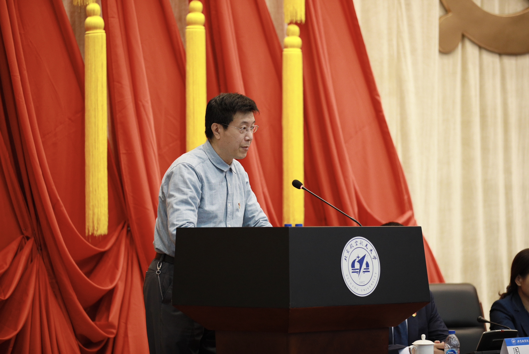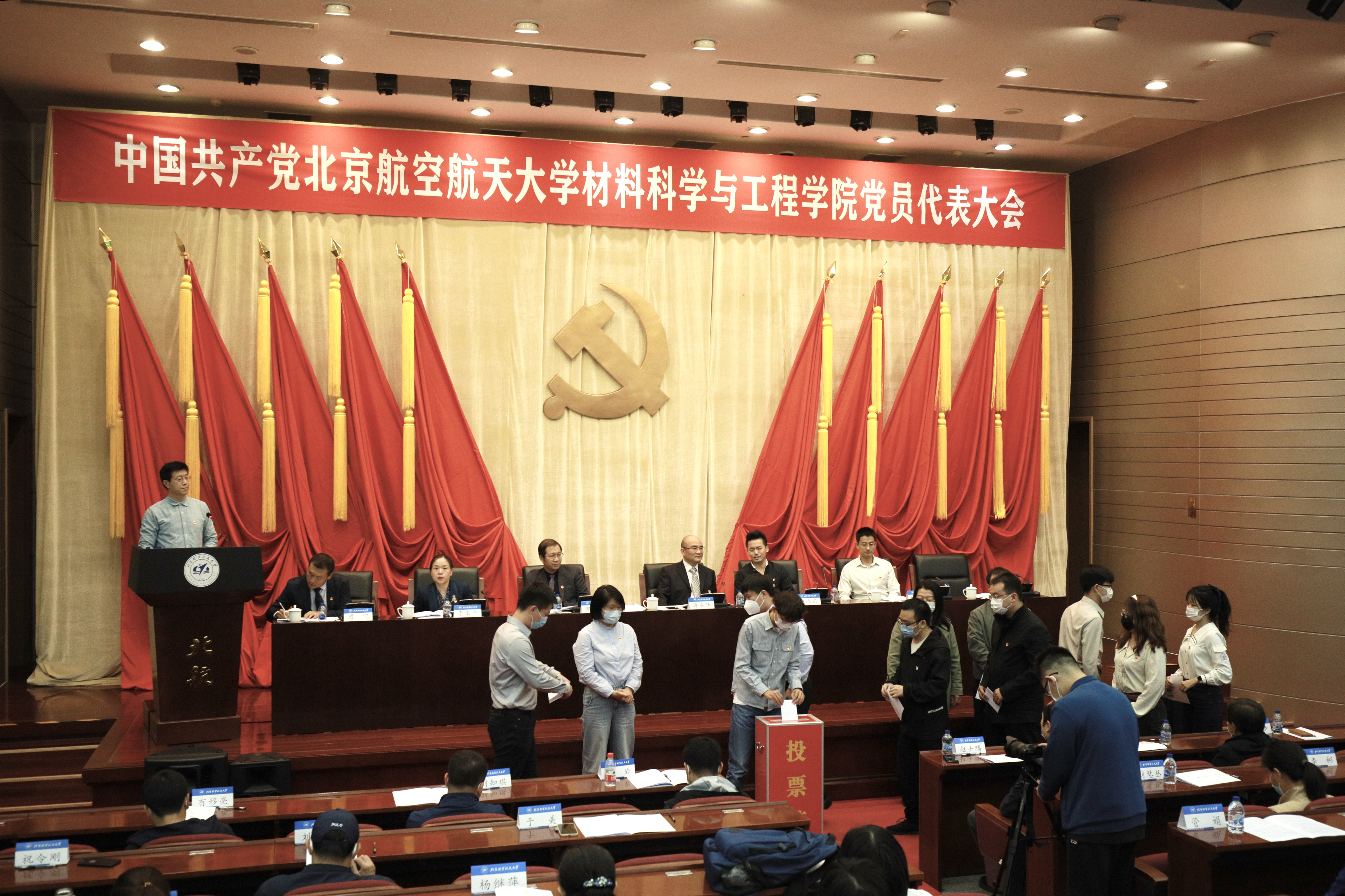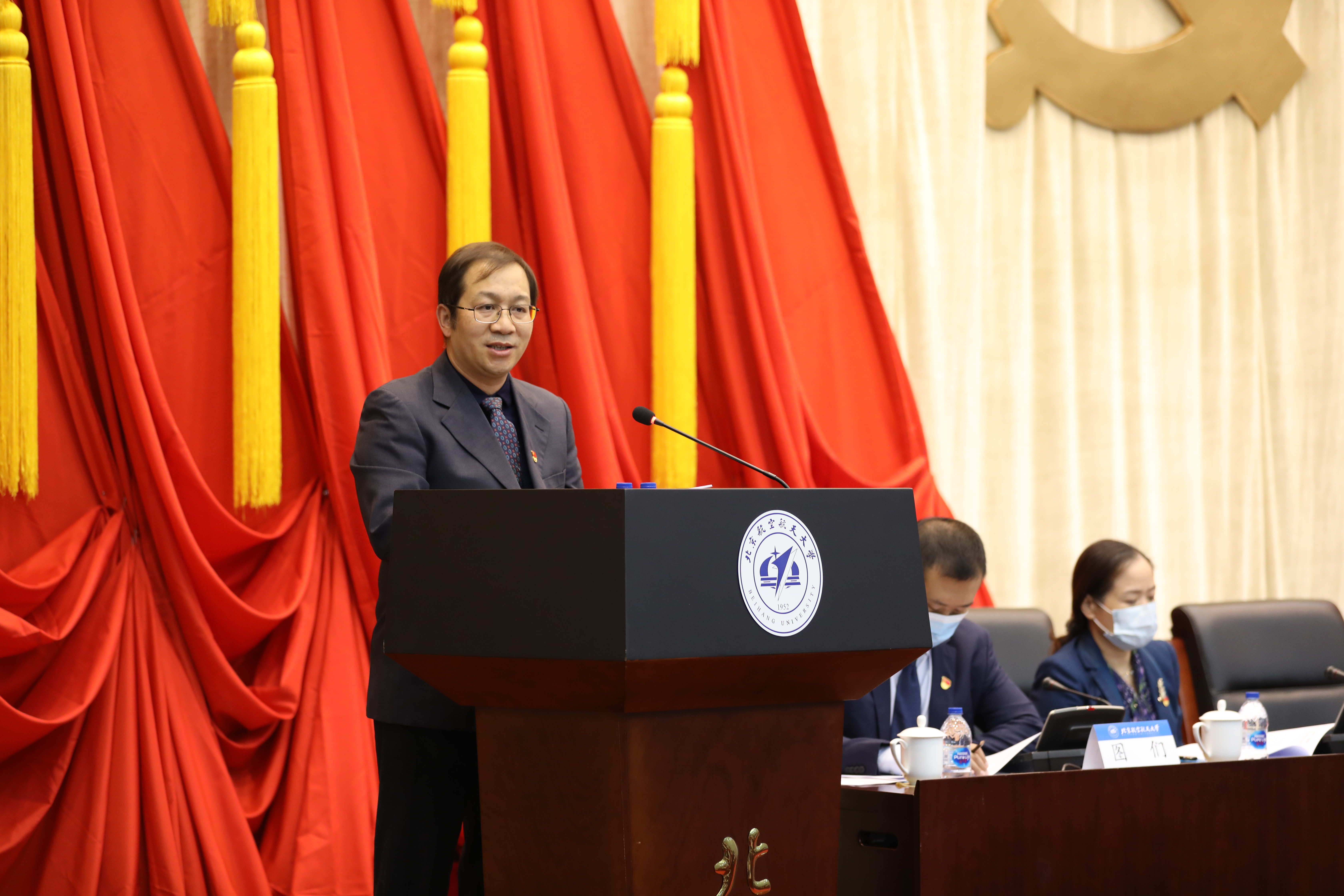 郭洪波同志代表党委向大会做了《喜迎党的二十大 弘扬“空天报国”精神 为建成中国特色世界一流材料学科而努力奋斗》的工作报告。