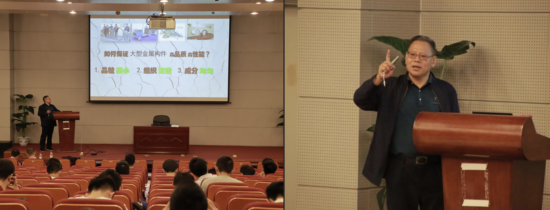 报告中,王华明院士从科创精神谈起,强调了科技创新的重要意义,勉励同学们发扬“艰苦朴素、勤奋好学、全面发展、勇于创新”的北航校风,激发同学们对材料专业的兴趣和材料报国的志向。他深入浅出地讲解了材料凝固的相关理论,解读了增材制造技术的基本原理,及其在制备重大装备大型关键金属构件中发挥的“革命性”作用,展示了金属增材制造技术在核电、医疗器械、单晶制备等领域广阔的发展前景。