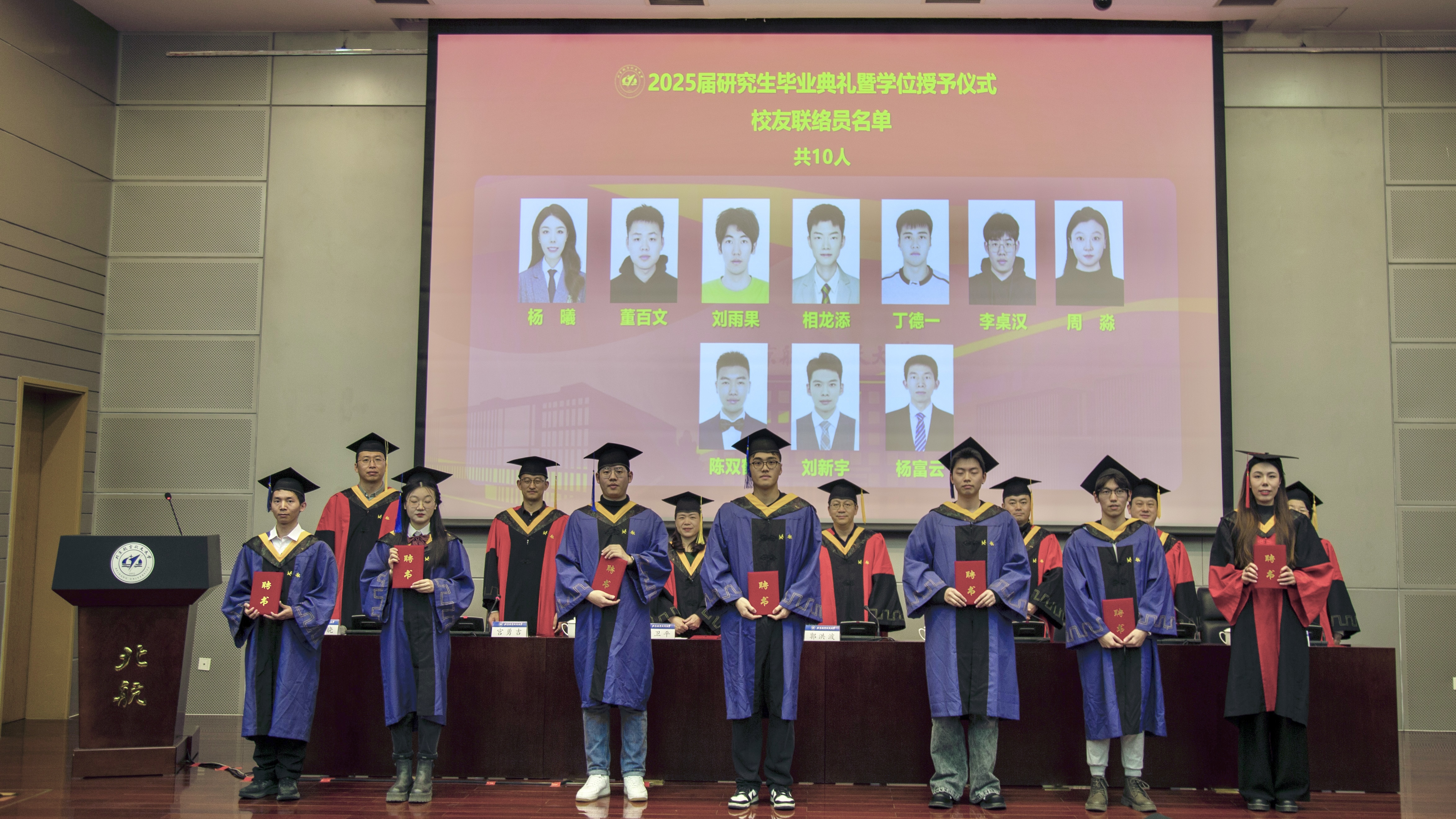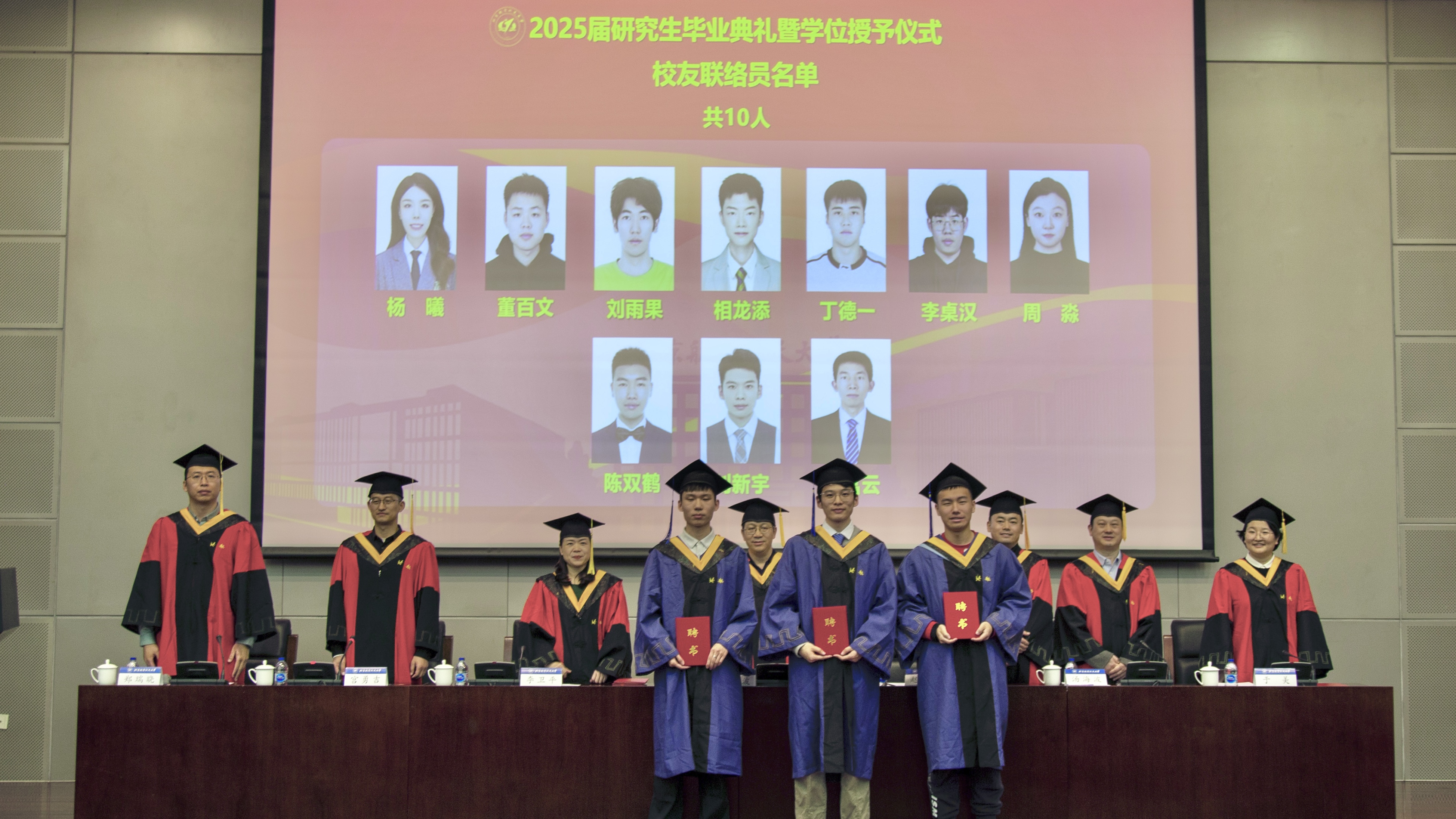 学位授予仪式上,与会教师为2025届研究生毕业生扶苏拨穗并合影留念。