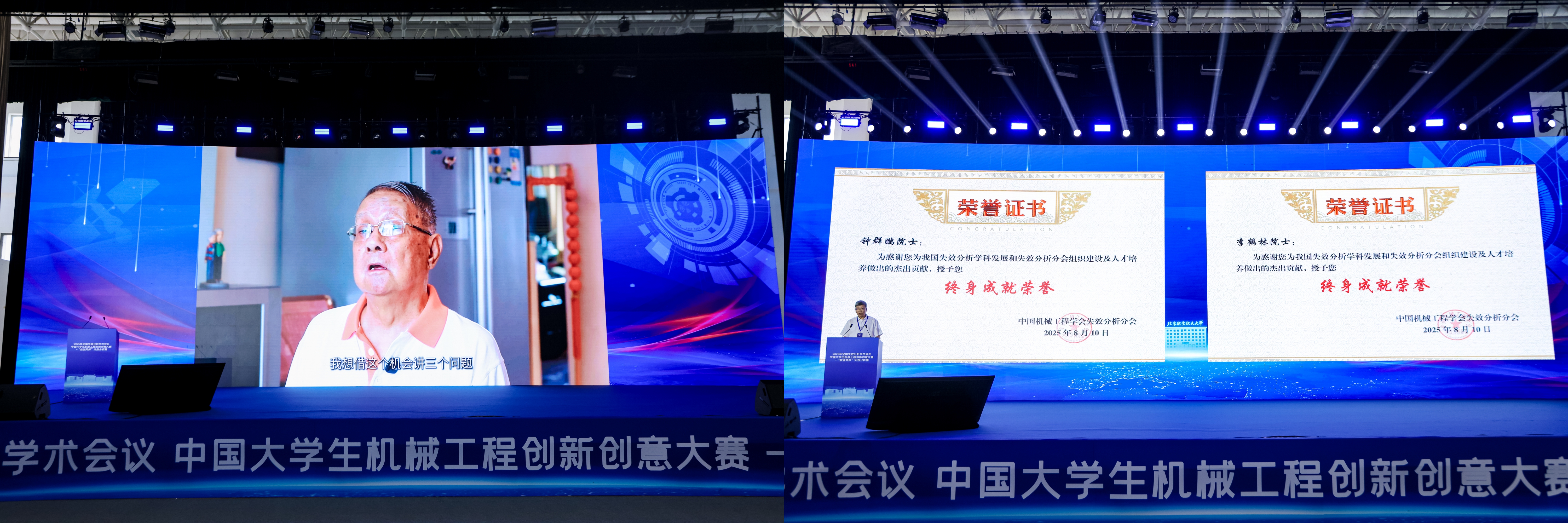 中国机械工程学会失效分析分会还特别为钟群鹏院士、李鹤林院士颁发了终身成就荣誉。钟院士、李院士通过视频和书面寄语的方式,表达了感谢和对失效分析事业发展的殷切期望。