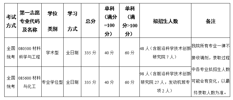 (3)总成绩相同的情况下,以初试成绩总分、初试业务课2(《材料综合》)、初试业务课1(《数学二》)的顺序,依次由高到低择优录取。