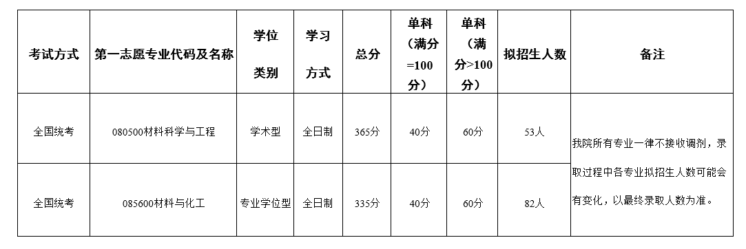 (3)总成绩相同的情况下,以初试成绩总分、初试业务课2(《材料综合》)、初试业务课1(《数学二》)的顺序,依次由高到低择优录取。