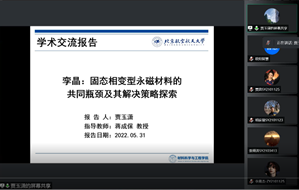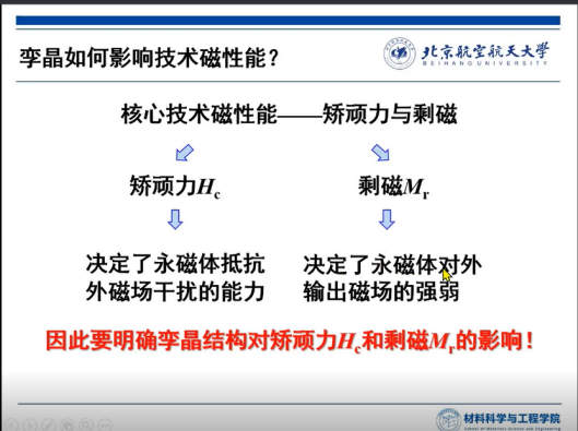 贾玉潇本次分享的主题是“固态相变型永磁材料的共同瓶颈及其解决策略”,首先介绍了目前永磁材料性能提升的瓶颈问题——孪晶结构,即由于固态相变过程中伴随的对称性降低。然而孪晶结构的产生对于永磁材料的性能具有很大影响,主要分为两个方面:一是孪晶会削弱磁体的取向度使剩磁降低;二是孪晶界作为反磁化过程中的优先形核点,同样会降低矫顽力的大小。