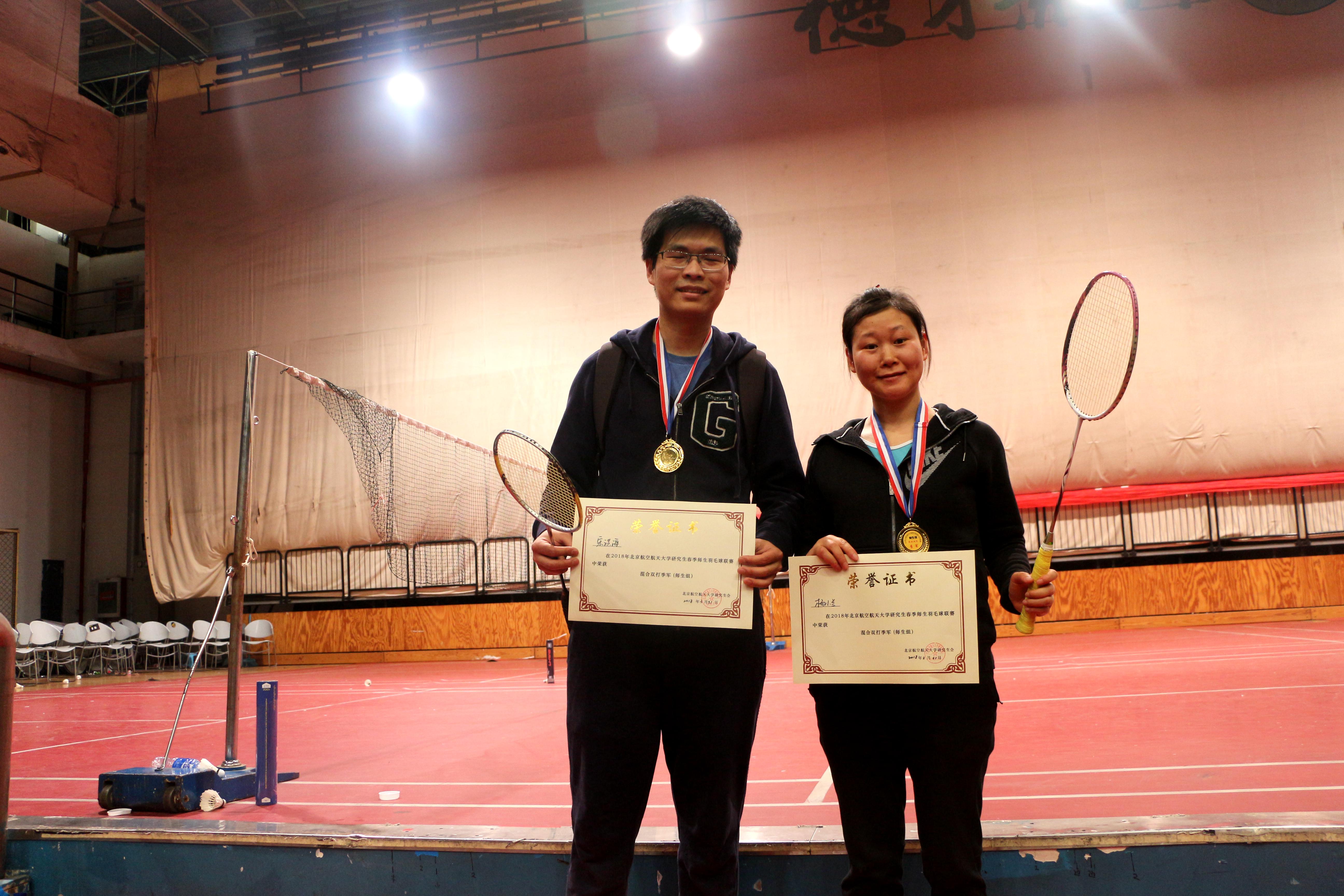 3月31日进行的是单项赛,公司樊晏辰,于雪同学凭借自身的实力与充分的准备,一路过关斩将,均荣获亚军。由郭洪波老师与李圳组成的男双、宋洪海老师与杨小兰组成的混双在师生组比赛中默契配合,稳扎稳打,依靠精湛的球艺取得胜利,均荣获季军。