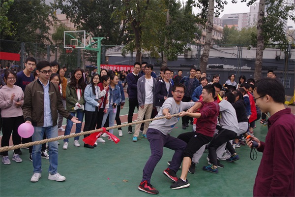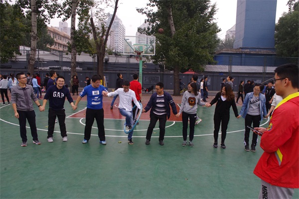 本次活动选取了样式繁多的比赛项目,既保证了竞技性,又体现了娱乐性,既发挥了个人能力,又强调了团体协作以及班级凝聚力。比赛以班级为单位,包含以下六个项目:五人六足、三球接力、动力火车、穿越呼啦圈、跳大绳以及拔河。每项比赛第一名班级得7分,第二名6分,以此类推,以最后总积分评定班级名次,以娱乐第一,竞赛第二的原则,确保每支参赛队伍都有奖励。