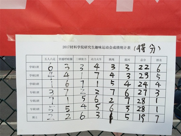 整个竞赛气氛激烈又不失轻松愉快,参赛同学们尽力完成每一项项目,全身心的投入在比赛中活动最后,体育部工作人员统计得分并公布名次。ZY17012和ZY17013班最终并列获得第一名。ZY17011班也表现优异,获得了第三名。第四名是由SY17013班获得,SY17012班获得了第五名,SY17011班获得第六名,BY17011班获得第七名。