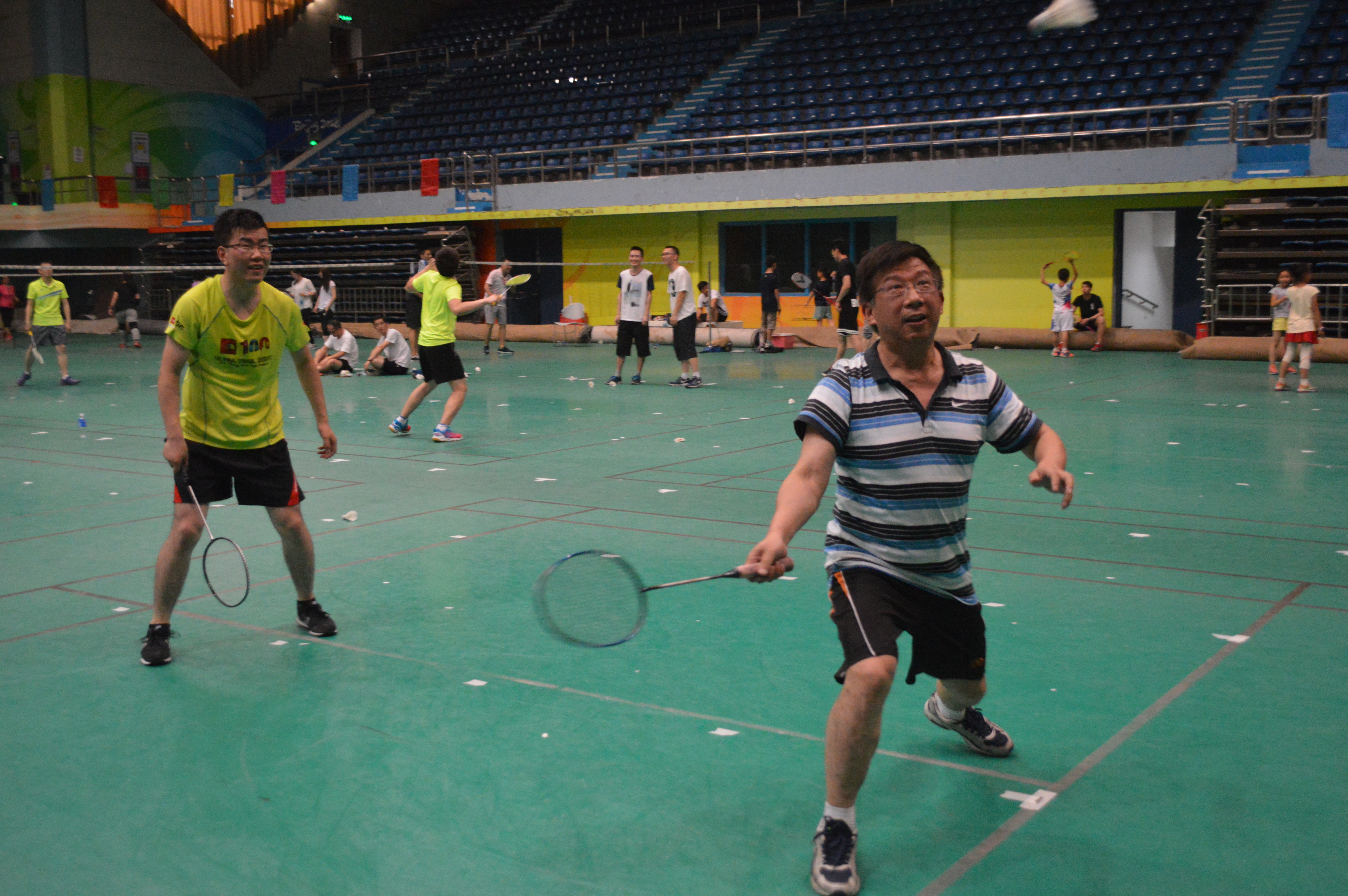 比赛分包括男单、男双、女单、混双四项,更有郭洪波、吴素君、沙江波、周春根等十余位老师参赛,参赛的员工包括本科生、硕士、博士。下午四点,比赛拉开帷幕,师生对抗赛以双打的形式展开,员工们反应敏捷、身轻如燕,攻势如潮;老师们也不甘示弱,凭借精湛的技术,屡屡上演精彩反攻,场边的观众连连叫好。每一局打完后,老师们仍旧意犹未尽,片刻休息过后,又继续下一局比赛。整场比赛结束,老师和员工互有输赢,总体来看,老师们还是处于领先的位置。