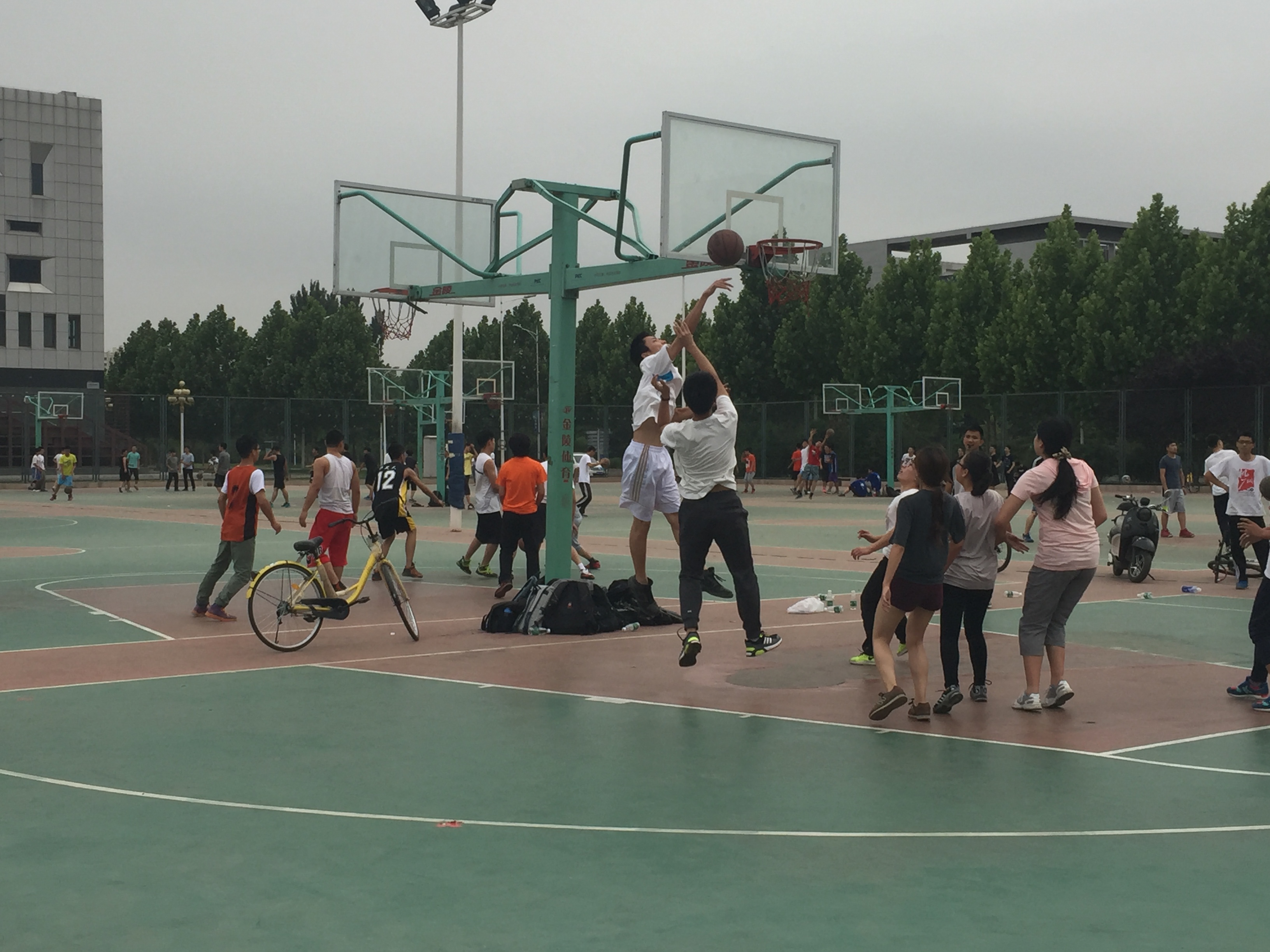2016年5月31日,大一大二的同学们在沙河校区篮球场展开了一场激烈的篮球友谊赛。此次比赛旨在增进两个年级之间的友谊,同时纪念大二同学在沙河校区度过的两年时间,欢送他们即将离开沙河校区。参加此次比赛的有大一大二的篮球队成员和篮球爱好者,以及两位辅导员。