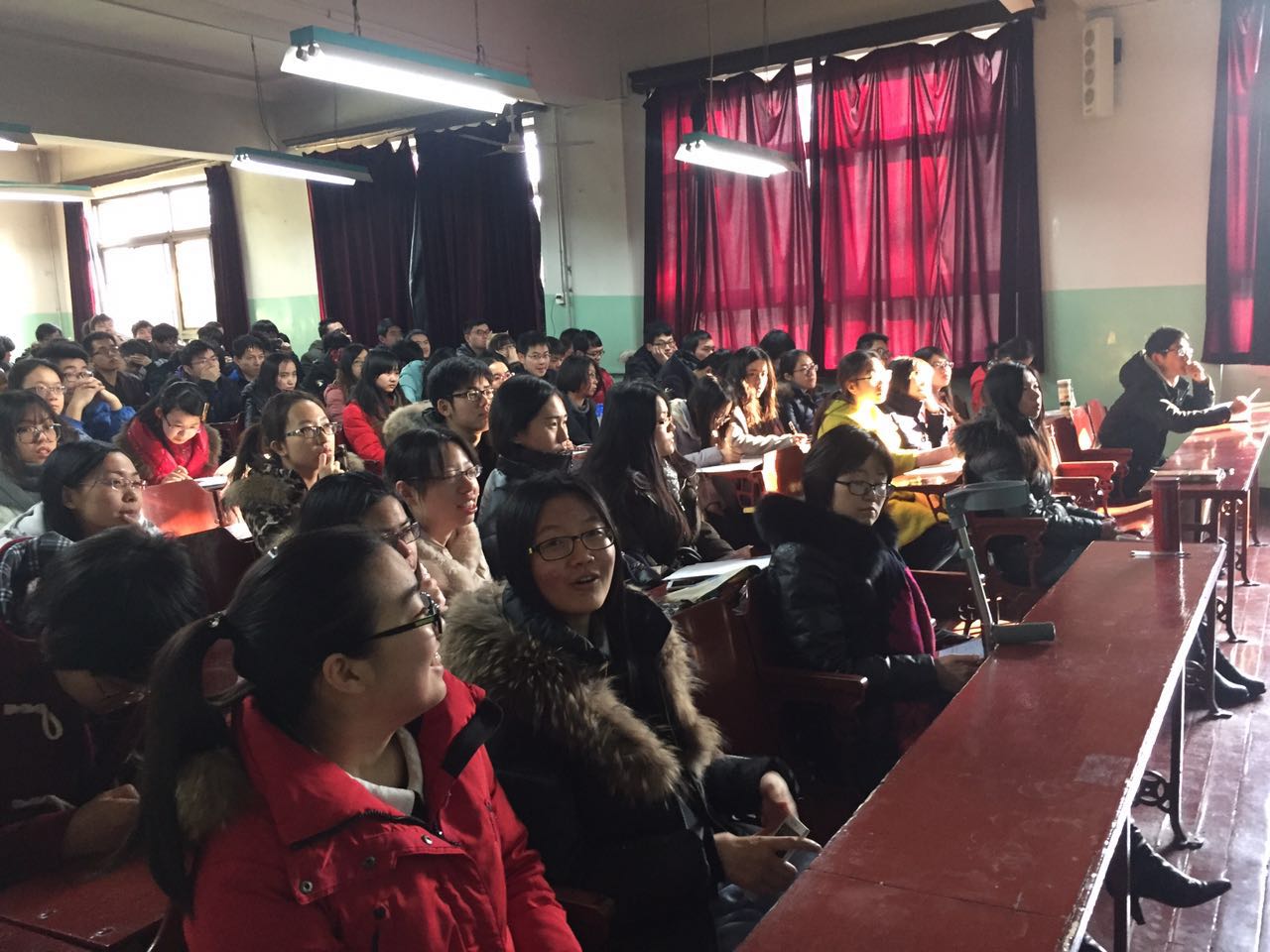 随后,2011级毕业生校优秀论文获得者井京和同学们分享了她在做毕业设计过程中的收获和经验。她根据自己的切身体会,给出了一些具体的建议。例如培养查阅文献和看文献的能力、多和师兄师姐交流、及时做好实验分析和总结以及注意实验室的安全规范等等。