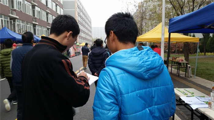 12点下课铃响后,原本安静的街道逐渐变得喧闹起来,面对熙攘的人群,外场的工作人员们开始卖力宣传。有的同学发放关于校歌赛吉祥物征集令的传单,有的则高声吆喝。他们的努力很快便获得回报,许多设计师前来报名,留下自己的联系方式,也有许多同学前来填写问卷,表达了自己对吉祥物的喜好,并留下了宝贵的建议。