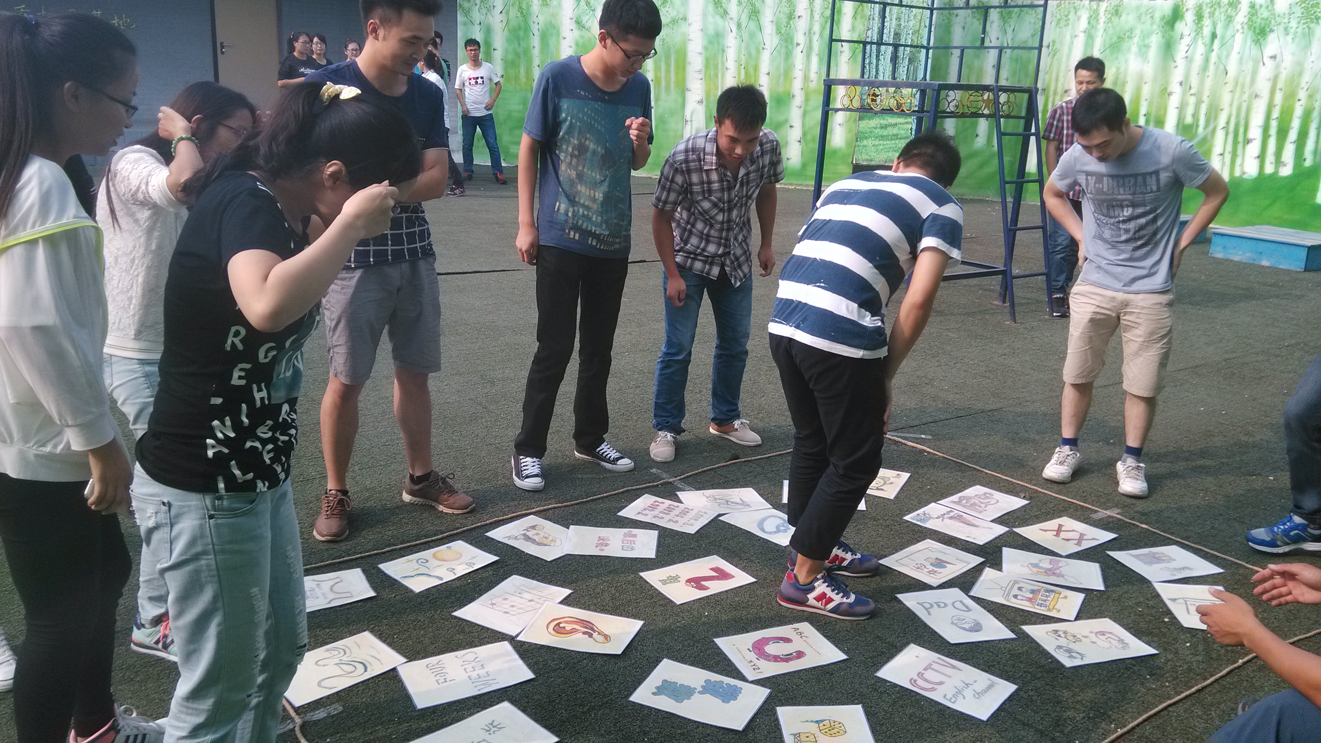 活动开始,同学们紧密地围成一个圈并使这个圈转起来,之后5个男生每人伸出两个手指,合力使一个女生腾空。随后同学们分为两组各自设计海报,海报内容包括队名、队训、队歌等。然后大家进行了“急速60秒”和“信任背摔”的活动。这些活动增强了大家的默契,充分展示了每个成员的聪明才智,也使同学们的心理承受能力得到了锻炼。最后大家又各自做了自我介绍,使同学们对彼此有了更深的了解。