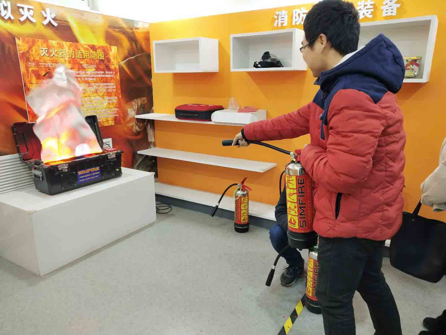在“虚拟灭火”环节,志愿者向同学们教授了使用灭火器时“提、拔、瞄、压、扫”的技巧,并且让所有同学都练习了使用灭火器的方法。