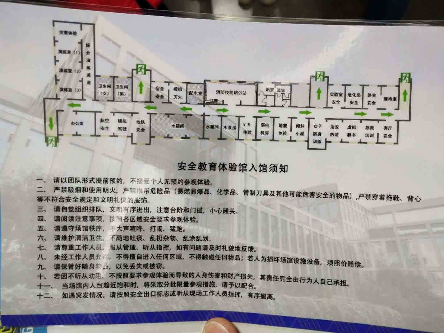 活动开始前,安全教育体验馆的志愿者向大家说明馆内的逃生路线和注意事项,告诉同学们在进入任何一个建筑物时都要有安全意识观念,首先就是要熟悉该建筑物的逃生路线图,以防紧急情况的发生。