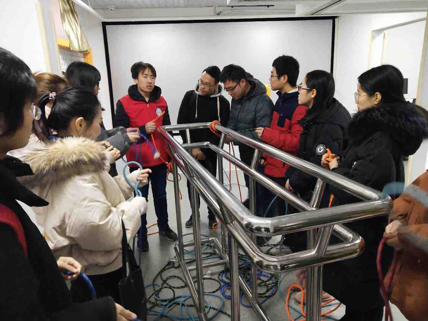 志愿者还向同学们传授了从高层逃生时要用到的绳结技巧,大家学习了猪蹄扣、双平结、摩擦结以及腰结四种绳结。志愿者提醒大家,并不是要用绳子从高层逃生到地面,而是逃生到非火灾楼层等待救援。