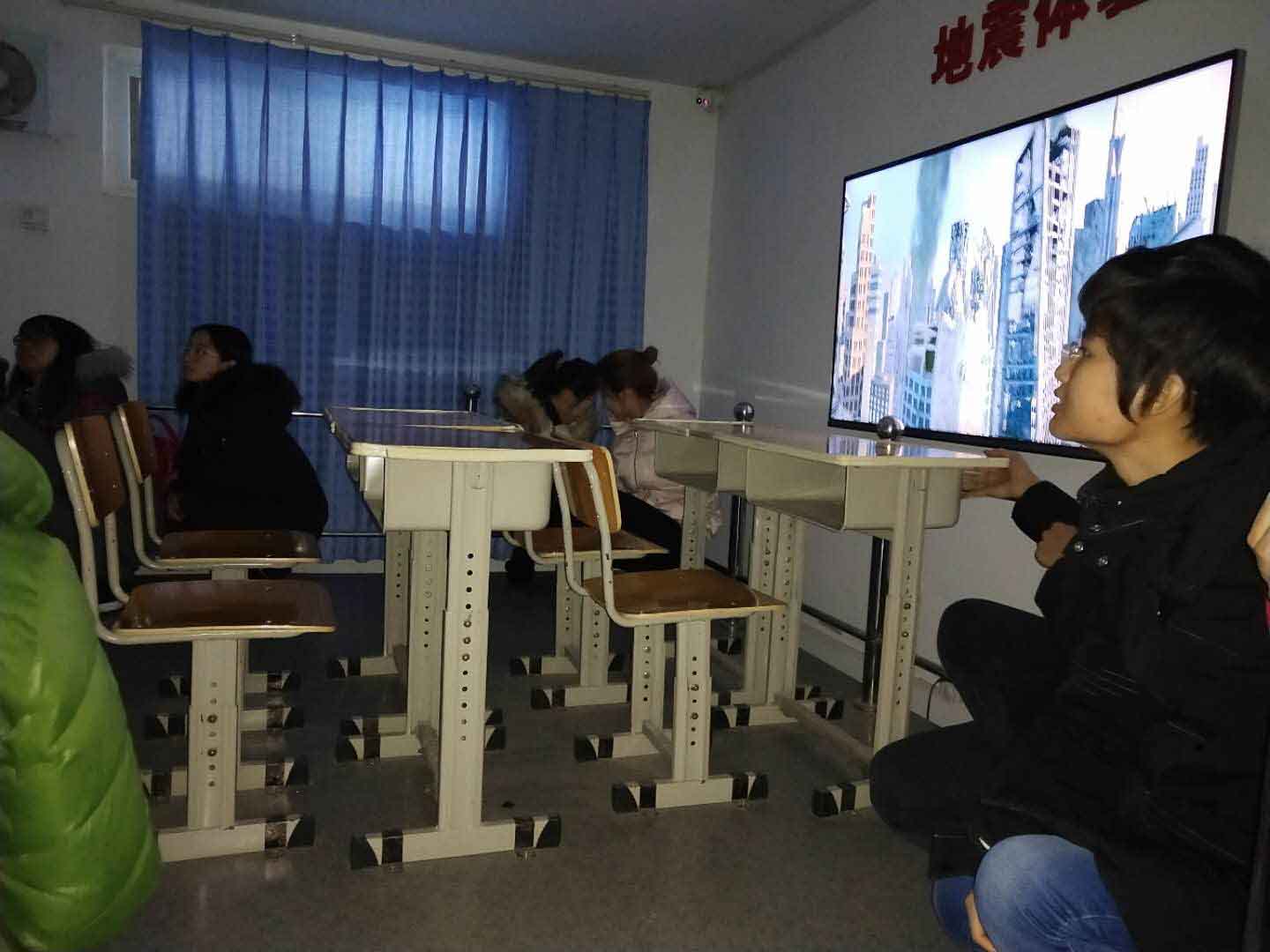 在地震体验室内,同学们体验了5级和8级地震,并且从模拟的逃生通道内“逃生”。现场有一名女同学在体验8级地震时由于失去重心倒在体验平台上,几次尝试都没能再站稳脚跟,由此意识到安全演练的重要性。