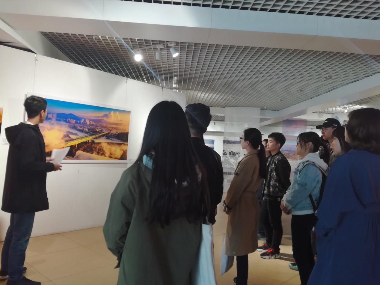 艺术馆内,灯光柔和,映衬的图片更加色彩绚丽。讲解员为我们耐心介绍了每幅图片的背景和内容。我们领略了寒冷天气下的烟雾缭绕的松花江大桥;见识了守卫京畿的慕田峪长城和司马台长城;了解了世界上最长的跨海大桥——港珠澳大桥;看到了像中国结一样漂亮的佛山顺德立交桥;欣赏了宛如“金色凤凰”般的大兴新机场。除了这些我国建设的重大工程,我们也从摄影师的镜头下见到了我国的大好河山,开渔节时的象山,江南古镇周庄,塞罕坝的机械林场,繁忙的连云港集装箱码头,晨曦中的深圳蛇口太子湾邮轮母港,高速建设中的雄安新区,百舸争流的白洋淀,高楼林立的珠江新城,作为两江枢纽的重庆朝天门,中国最具影响力的金融中心——上海陆家嘴,首批沿海开放城市天津,焕然一新的兰州等等。