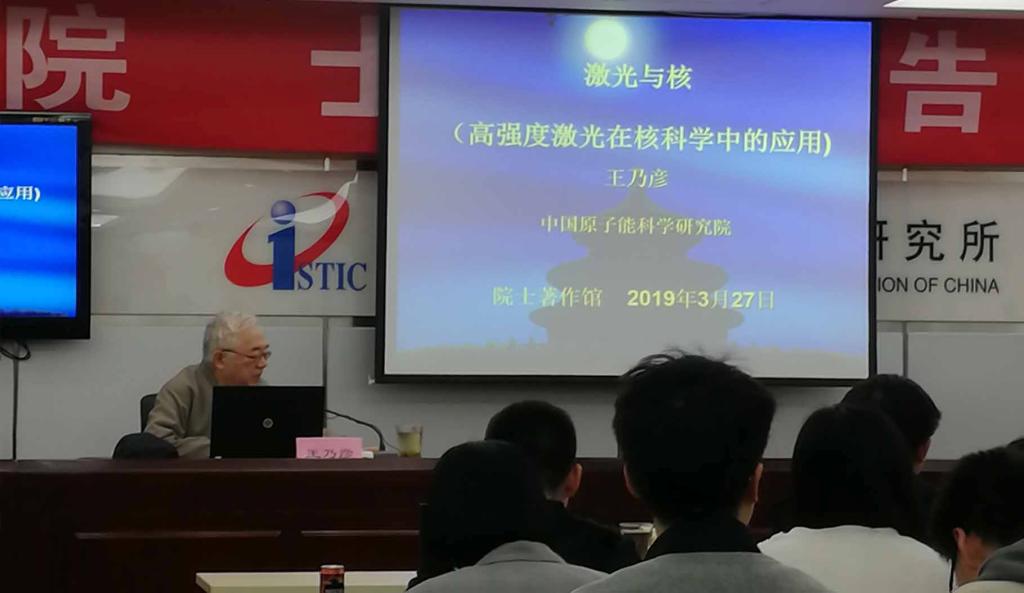 3月27日下午,williamhill官方网站18名研究生参加了由中国科学技术信息研究所举办的王乃彦院士报告会。王乃彦院士就超强超短激光与强物理场、超强超短激光的产生、超强超短激光与物质的相互作用以及在核科学中的潜在应用四项内容做了详细的讲解。此外,王乃彦院士还介绍了国内外学者在超强超短激光研究中投入的巨大努力,并殷切期待我们年轻学子未来能够在此领域做出进一步的突破。