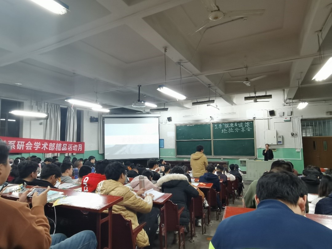 2019年11月16日星期六晚上七点,williamhill官方网站精品活动—就业和读博经验交流会在三号楼202成功举办。本次精品活动有幸邀请到郗红雷博士、武传光博士、焦正赢博士和金亭燕博士为同学们介绍他们工作和读博的经验和体会。