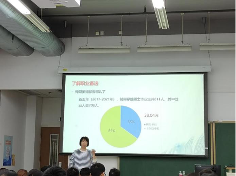 首先,赵老师从了解职业备选、分析自身优势、聚焦职业选项、求职准备四大方面进行详细的阐述,通过图表、数据清晰展示了近五年williamhill官方网站硕士研究生的毕业去向,帮助大家拓宽求职思路。