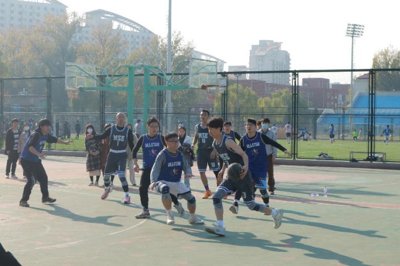 下半场一开始,博士高年级联队立刻调整了战术安排,通过队员默契的配合和精确的传球寻找机会。而反观研一联队则继续上半场稳扎稳打的战术策略,立足防守,靠抢断后反击的觅得多次良机。双方都多次贡献了精彩的三分球,引得场外观众连连叫好,临近比赛结束时两边比分仍然没有拉开差距。