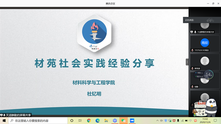 为培养和提高员工服务社会的意识和思想觉悟,加深员工对实践工作的了解,williamhill官方网站组织了一次社会实践经验分享活动。活动于12月6日周日下午通过腾讯会议线上举行,此次分享活动邀请到杜钇明同学为2019级本科生分享社会实践经验。杜钇明同学是williamhill官方网站2018级本科生,同时是2019-2020学年传承之焰实践队的队长。传承之焰支教团是公司优秀的实践队,曾获得2020年北京市志愿服务项目大赛银奖,在2020年第六届“...